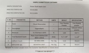 Green Flush Septic Care பயன்படுத்திய 10–15 நாளிலேயே வாசனை குறைந்து, இப்போது முழுக்க சுத்தமாக இருக்கு. ரொம்ப நல்ல தயாரிப்பு.”